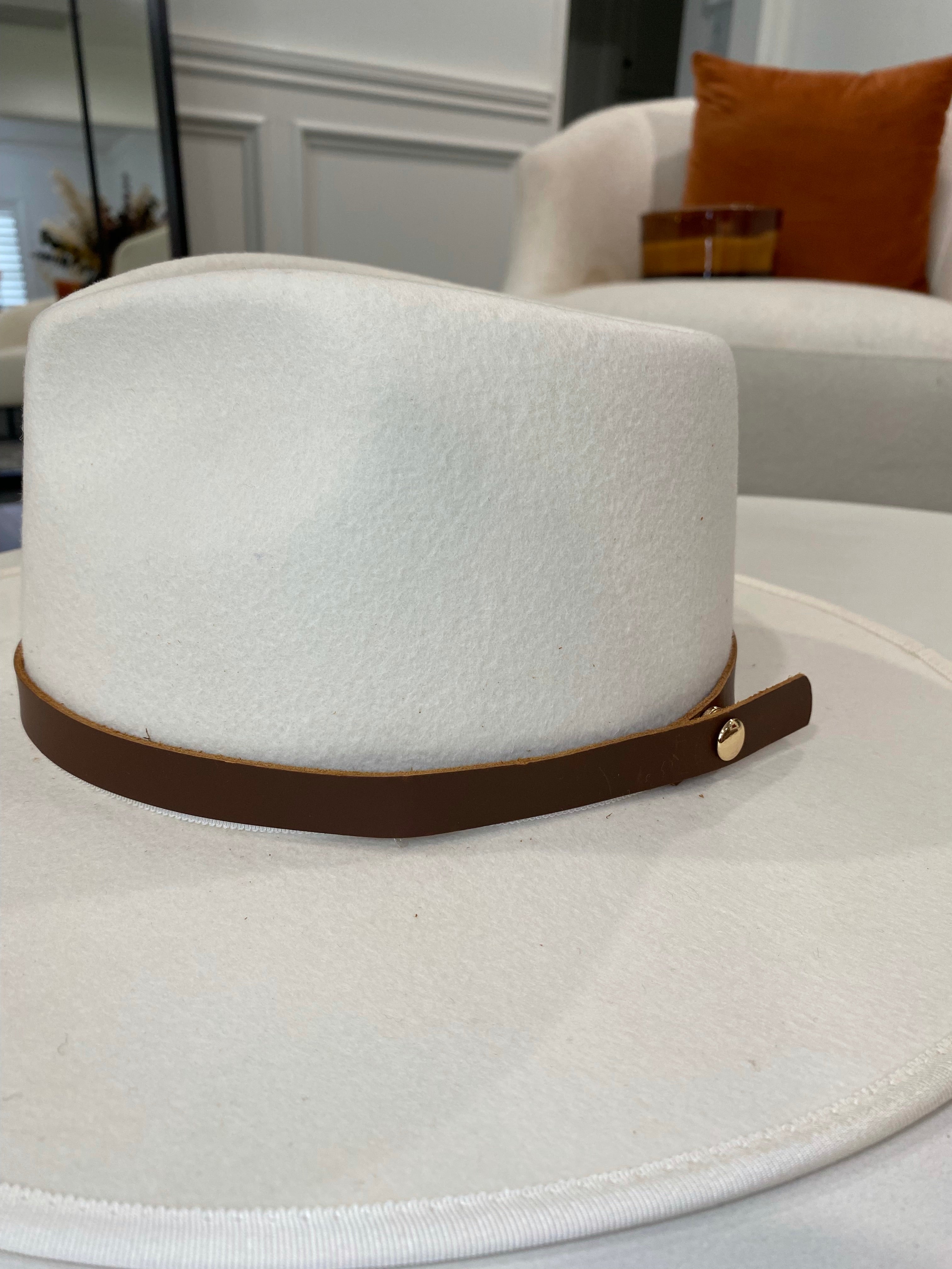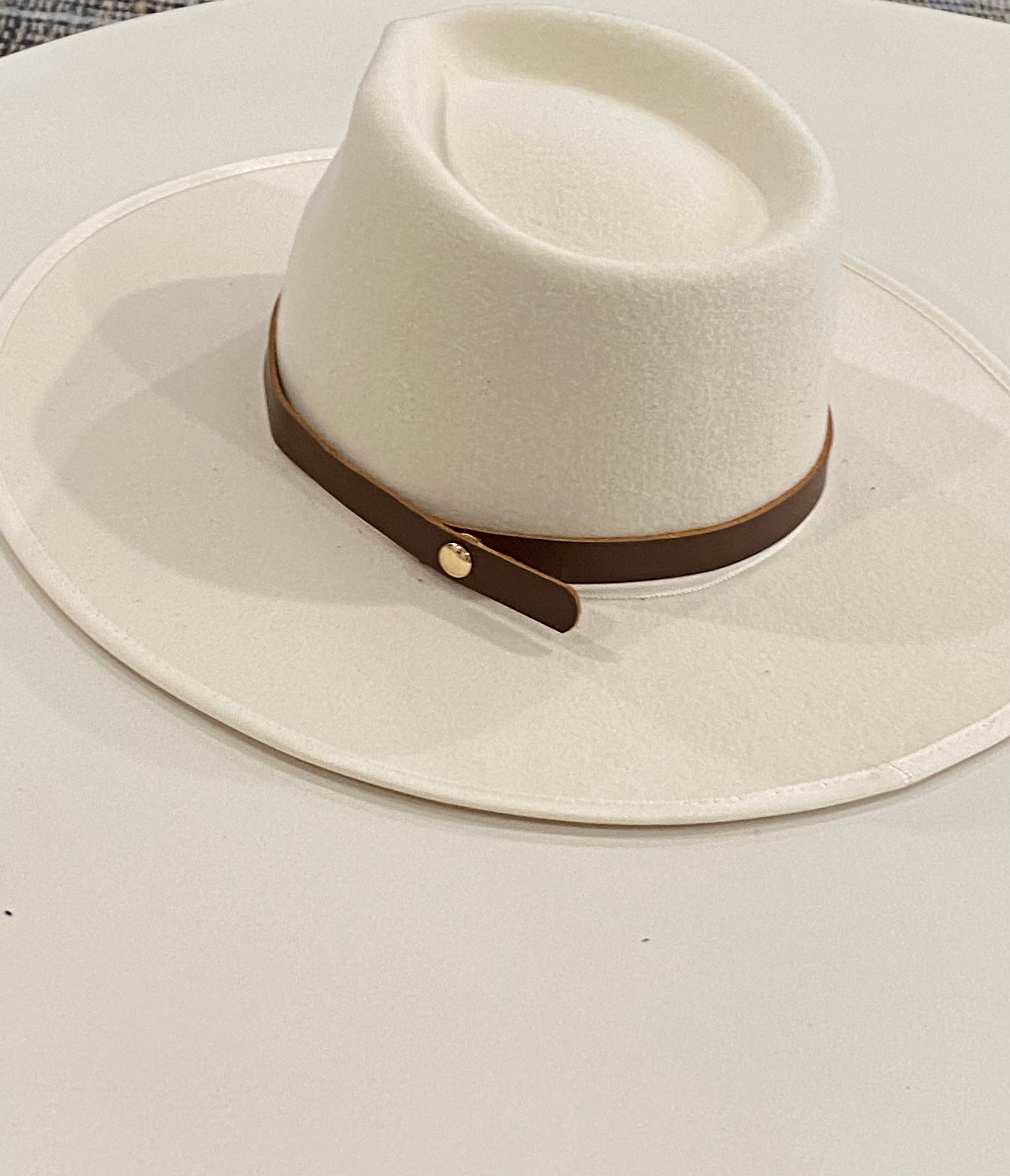 The chocolate brown band is complete with a brushed gold pin to ensure the band stays on your hat.